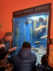 Po prohlídce zvířat se výprava přesunula do prvního patra, kde pan učitel dětem ukázal sbírku nerostů a minerálů. Děti si mohly prohlédnout různé druhy kamenů, dozvědět se, jak vznikají, kde se nacházejí a jaké mají vlastnosti. Pro mnohé z nich to bylo vůbec poprvé, kdy mohly vidět tak pestrou sbírku zblízka.