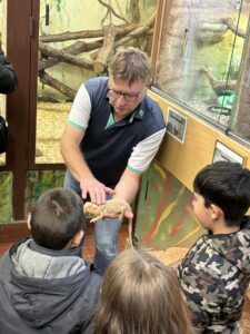 Děti z NZDM DoPatra se vydaly na obohacující a zábavnou návštěvu Přírodovědného centra při Základní škole Karla IV., kde je přivítal pan učitel Kubelka – průvodce celého programu i člověk s velkou vášní pro přírodu a zvířata.